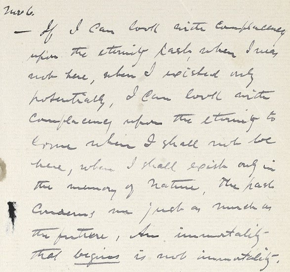 – If I can look with complacency upon the eternity past, when I was not here, when I existed only potentially, I can look with complacency upon the eternity to come when I shall not be here, when I shall exist only in the memory of nature. #entelechy