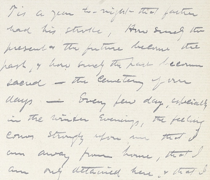 Tis a year to-night that father had his stroke. How surely the present and the future become the past, and how surely the past becomes sacred – the cemetery of our days.