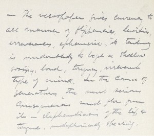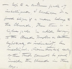 – Up to certain grade of intelligence, I consider it a good sign if a man belongs to the Church. Then there is a higher grade in which belonging to the Church implies a certain hypocrisy, or insincerity. An intelligent, disinterested seeker of the truth cannot be found inside the Church in these days.