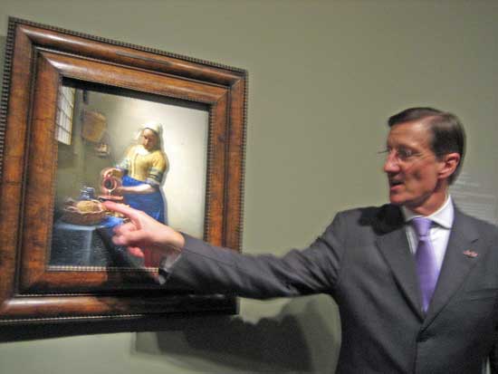 My favorite memory of Walter Liedtke was when he was giving our intern group a tour of the Dutch and Flemish Galleries of the Met, and, gesticulating vigorously, he unintentionally, unmistakably, loudly, rapped the surface of one of the Met’s Vermeers with his knuckle.