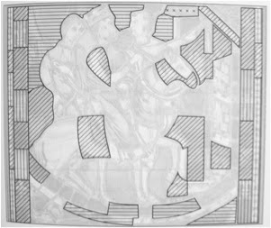 Fig. 3: Cothren’s hypothesis as to the full composition of the Theodosius narrative within the stained glass window. 17 is where the Theodosius in question was probably located.