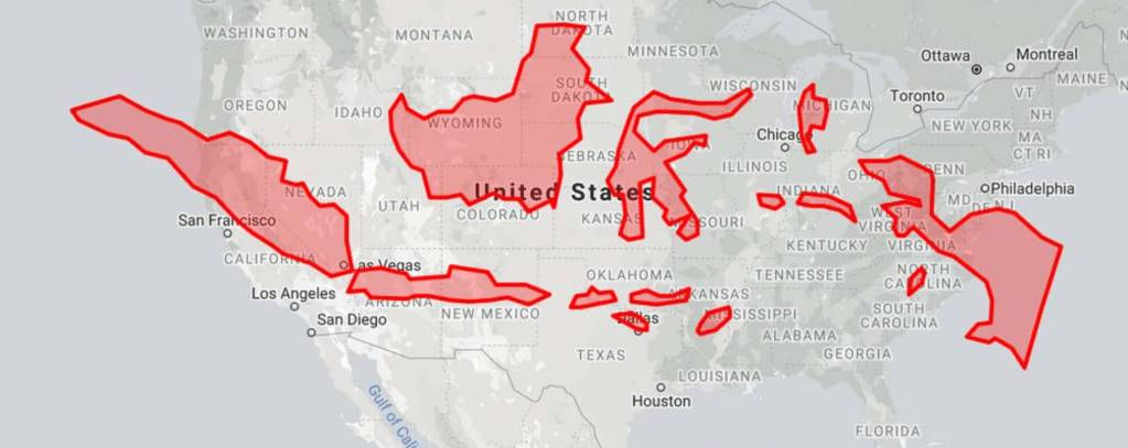 Indonesia is a lot bigger, geographically speaking than the Mercator map projection would have you know. Here it is compared to a country I am more familiar with, the USA: